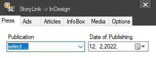 U StoryLinku otvorite panel Press i odaberite publikaciju za koju želite spremiti predložak.